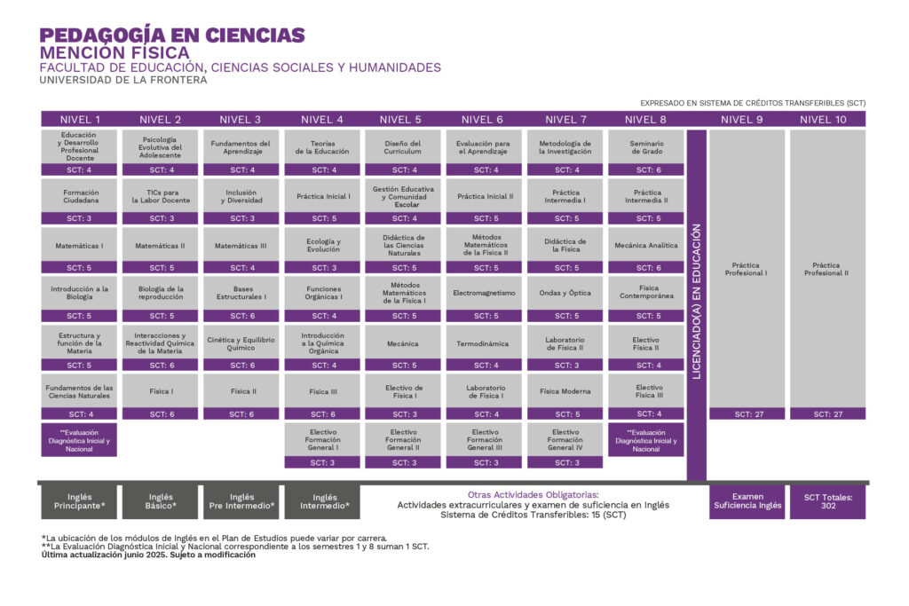 Su formación básica y especializada en educación considera diversos paradigmas, teorías del aprendizaje y características del contexto educativo, formación ciudadana, elementos que contribuyen a la reflexión de su práctica profesional. Desde la disciplina la formación común considera el saber de los fenómenos naturales, sus leyes y teorías, interacciones físicas, químicas y biológicas que se dan en los diferentes niveles de organización de la materia, haciendo uso del método científico. En la mención de Biología la formación específica considera la estructura y funcionamiento celular, los sistemas biológicos, el problema del origen de la vida y conceptos asociados a la ecología; en la mención de Química la formación específica considera las propiedades, composición, estructura y reactividad de compuestos orgánicos e inorgánicos, termodinámica y cinética; en la mención de Física la formación específica considera la relación espacio-tiempo, fuerza-movimiento, energía, fluidos, campo, electromagnetismo, ondas y física contemporánea. En el ámbito pedagógico integra estos conocimientos en la gestión del aula y en su participación en la comunidad educativa, facilitando el mejoramiento de los aprendizajes y desempeños sociales, culturales e interculturales de la diversidad de sus estudiantes.
